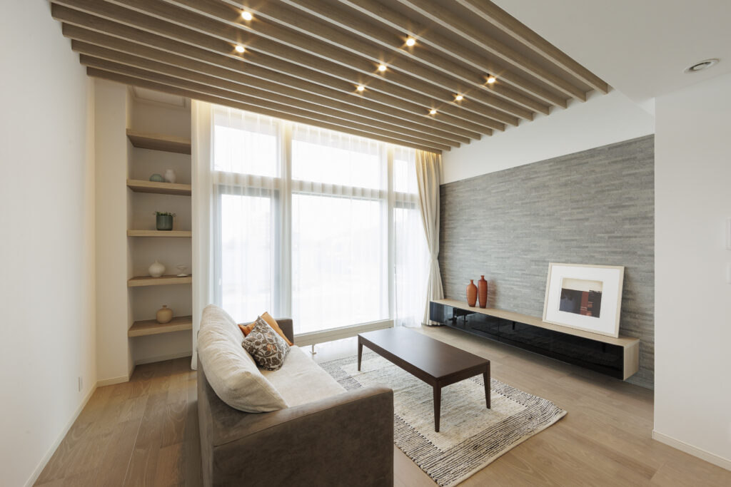 折下天井と間接照明がアクセントのLDK