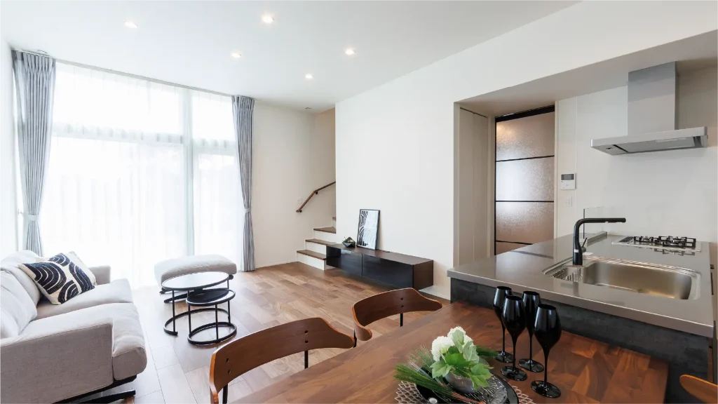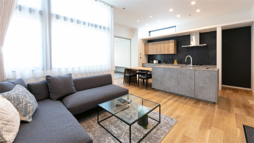 大空間のリビング・ダイニング・キッチン。